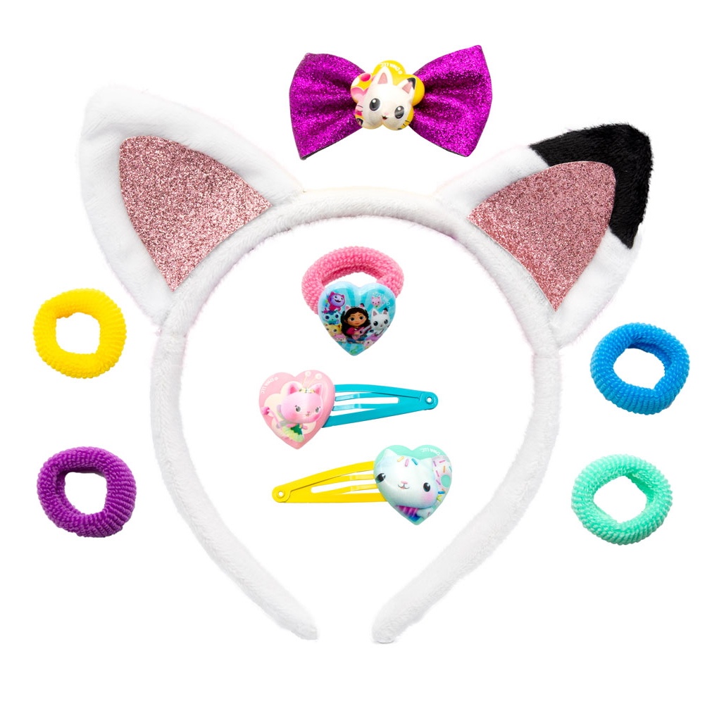 Набор для причесок для кукольного домика Габби состоит из 8 различных деталей и очаровательных кошачьих ушек. В наборе вы найдете различные заколки, резинки и многое другое. В набор входят кошачьи ушки, 5 резинок для волос, 3 заколки с изображением персонажей кукольного домика Габби.
