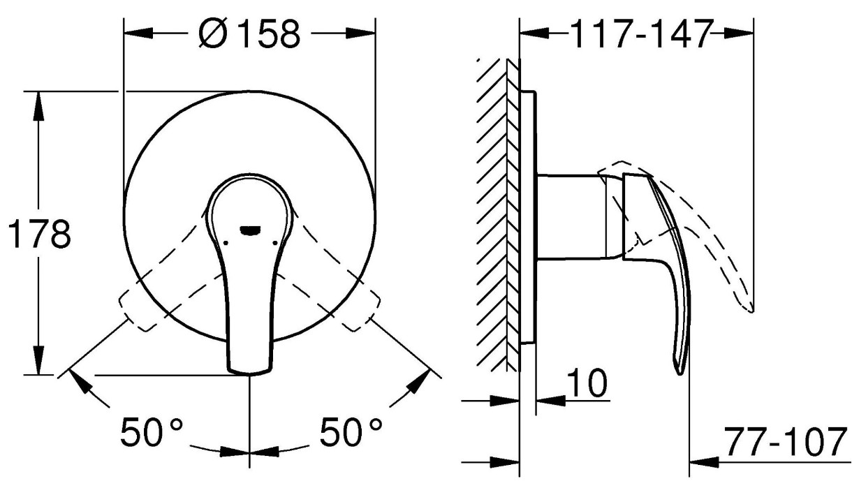 Однорычажный смеситель на 1 выход GROHE Eurosmart — это уникальная комбинация стильного внешнего вида и функционального внутреннего наполнения. Плавно изогнутый металлический рычаг придает конструкции некую динамичность, а настенная металлическая панель диаметром 158 мм и толщиной 10 мм абсолютно точно придется по вкусу ценителям тонких, изысканных линий.