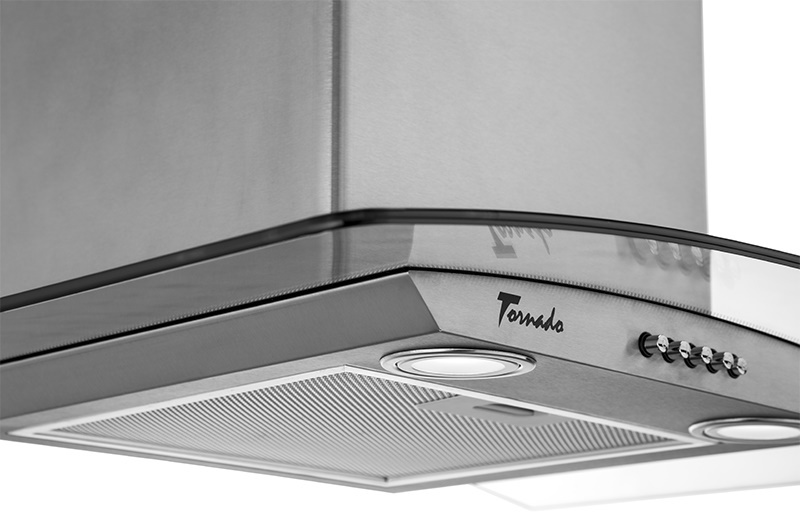 Главная собенность вытяжки это декоративное гнутое стекло. Это не только красиво смотрится, но и позволяет охватывить больше пара от готовки, что несомненно увеличивает эффективность работы вытяжки.