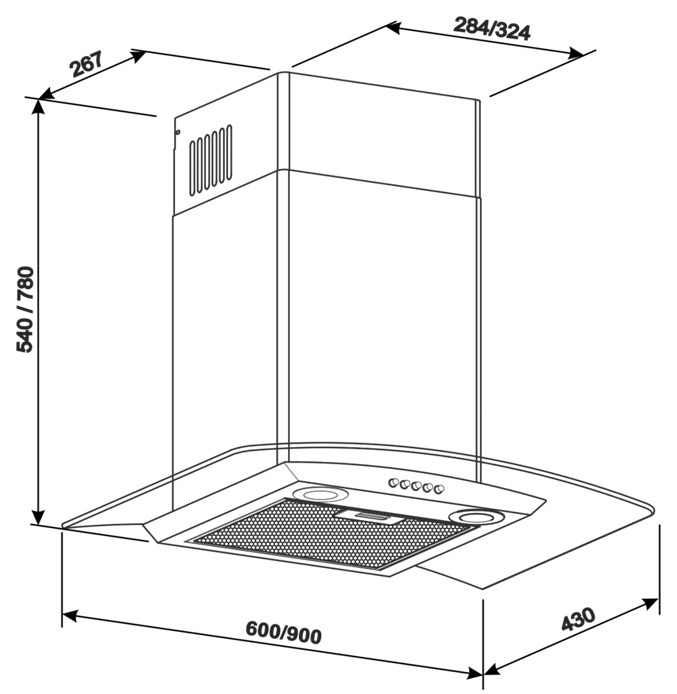 Главная собенность вытяжки это декоративное гнутое стекло. Это не только красиво смотрится, но и позволяет охватывить больше пара от готовки, что несомненно увеличивает эффективность работы вытяжки.