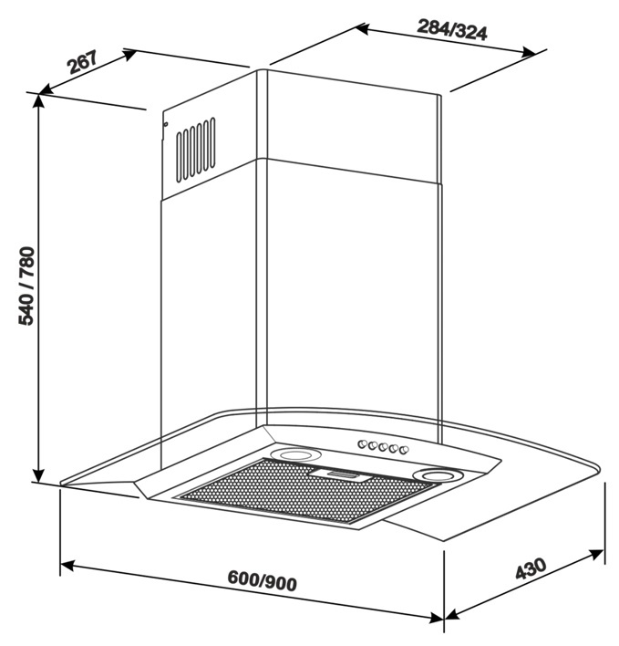 — Широкое стекло носит функциональный характер- делает вытяжку еще более эффективной;