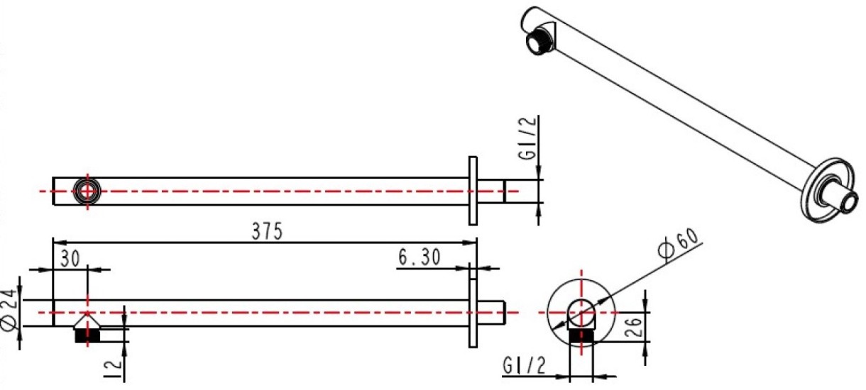 Душевой отвод Herz Pure Black 375mm (UH12216B)