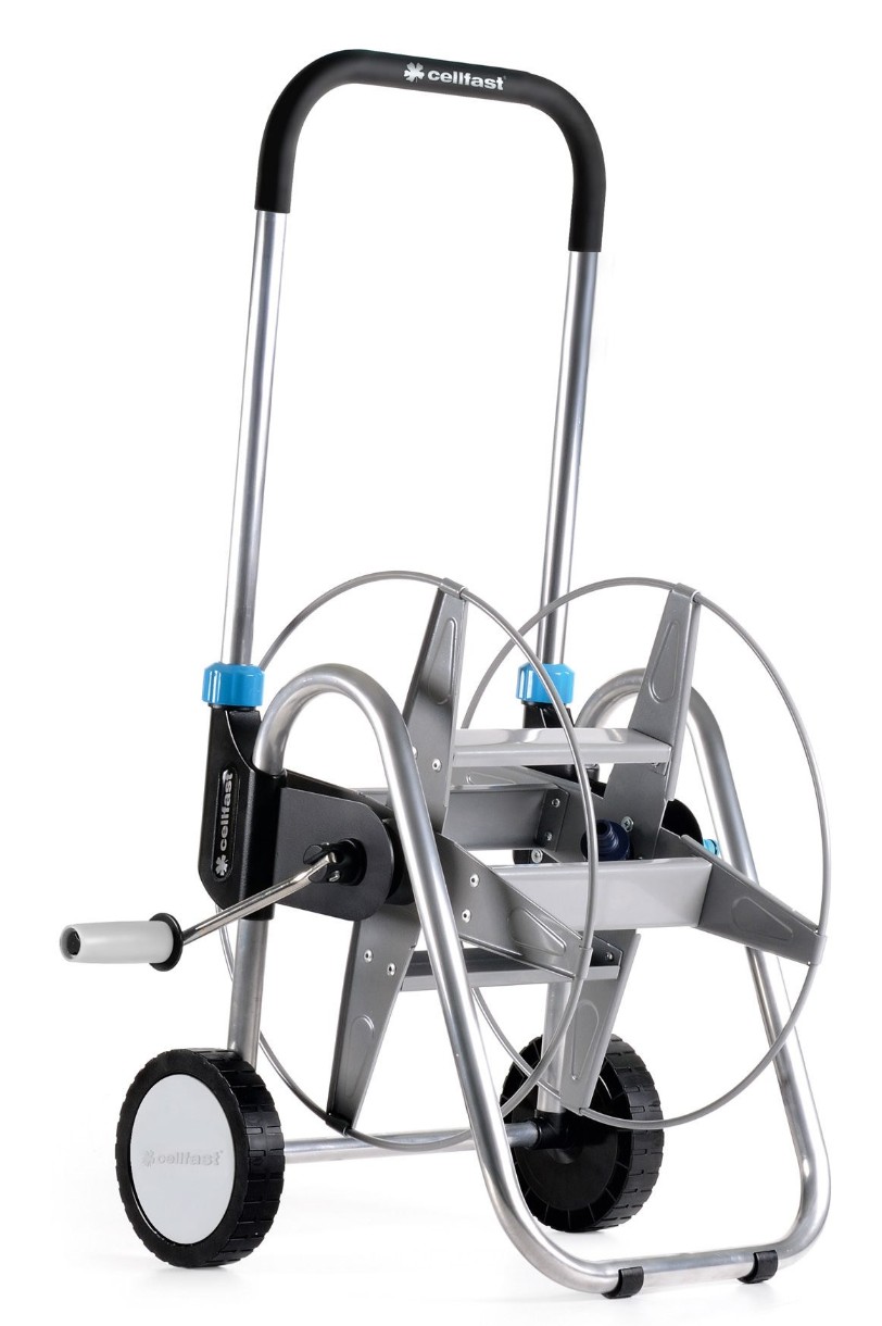 Конструкция тележки обеспечивает удобную перевозку и хранение длинных отрезков шланга.