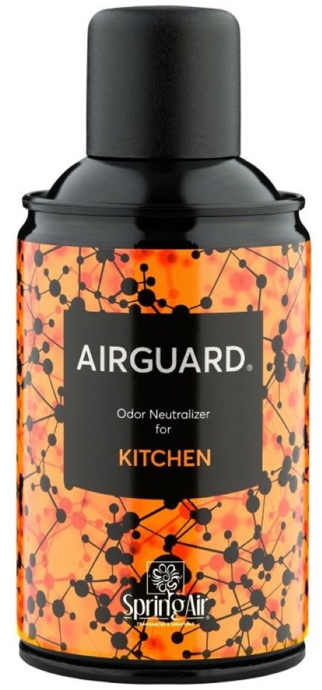 Spring Air Airguard® Kitchen (Нейтрализатор запаха кухни) — аэрозольный освежитель для нейтрализации стойких запахов органического происхождения, которые возникают в процессе приготовления и употребления еды (смешение запахов разных блюд и продуктов, распространение бактерий)