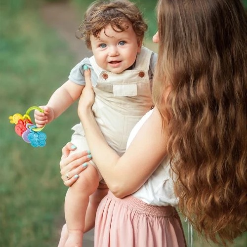 Эта яркая игрушка для прорезывания зубов от BabyJem облегчает зубную боль ребенка.