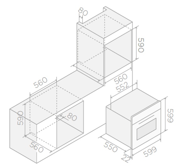Размеры ниши для встраивания (ВхШхГ)59x56x56 см