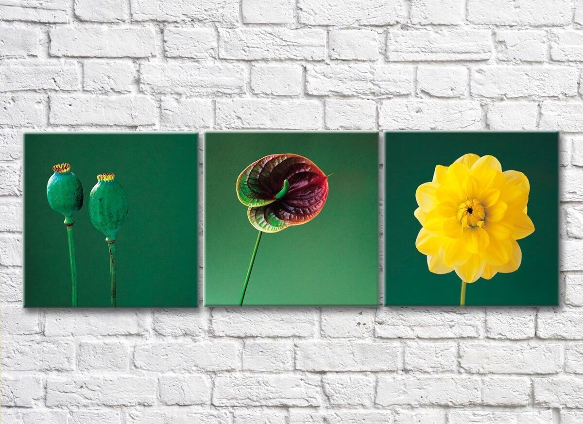 Картина Gallerix Triptych of flowers on an emerald background (500721)