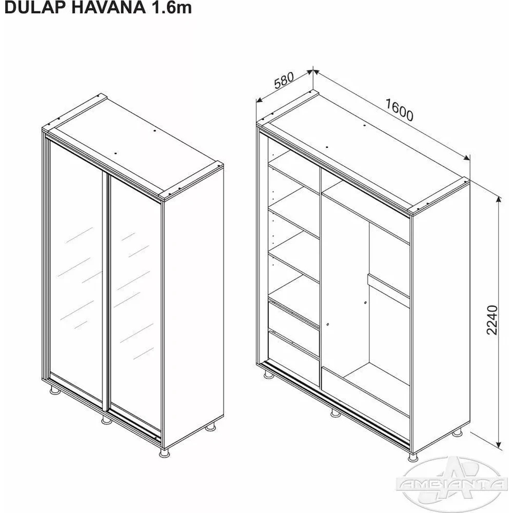 Шкаф-купе Ambianta Havana Mirror 1.6m Grafit