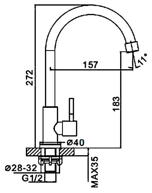 Длина излива150 мм