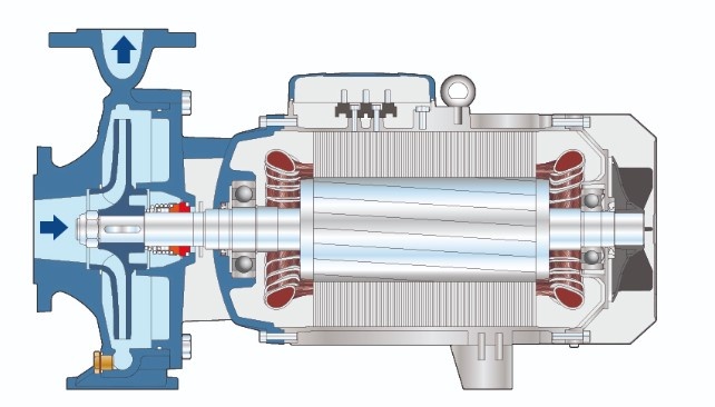Насосы данной серии рекомендуются для перекачки чистой воды и химически неагрессивных жидкостей. Эти насосы находят свое применение прежде всего в быту, промышленности и в сельском хозяйстве, где их характеристики прочности и надежности могут быть оценены по достоинству. Исполнение насосов согласно нормативам EN 733-DIN 24255 обеспечивает соответствие, размеров, положения всасывающего и нагнетательного патрубков, опорных ножек и габаритов, указанным нормативам; это служит гарантией соответствия характеристик покупаемого насоса его назначению, даже в случае особо высоких нагрузок, а также полной взаимозаменяемости с насосами, выпускаемыми согласно данным нормативам. Особенности конструкции, позволяющие выполнять демонтаж, не отделяя корпус насоса от трубопроводов (back pull out), делает применение этих насосов простои и удобной, при самых разных условиях эксплуатации. Установка насоса должна производиться в местах, защищенных от атмосферного воздействия. Серия F включает в себя ЭЛЕКТРОНАСОСЫ ЦЕНТРОБЕЖНОГО ТИПА С ОДНИМ РАБОЧИМ КОЛЕСОМ, изготовленные согласно нормативам EN 733-DIN 24255. Рабочее колесо, качающееся на ведущем валу, находится прямо перед всасывающим патрубком, предусмотренным на корпусе насоса. Особая форма рабочего колеса обеспечивает при минимальных гидравлических потерях, радиальное перемещение жидкости по направлению от центра к периферии, в процессе которого лопасти, имеющиеся внутри канала рабочего колеса, передают энергию накачиваемой жидкости как в виде напора, так и в виде увеличения скорости потока. На выходе с рабочего колеса жидкость закручивается в спираль, которая, совместно с коническим диффузором, обеспечивает преобразование части кинетической энергии в энергию напора.