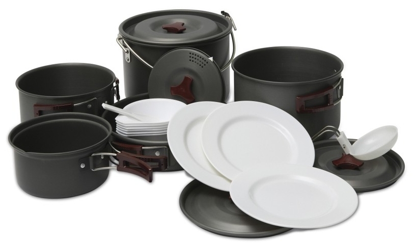 Набор алюминиевой посуды Pinguin Family Alu 605006 для большой дружной семьи из 8 человек.Поверхностный слой анодирован, что придает изделиям огнестойкость, износостойкость. В комплект входят 4 кастрюли, одна из которых с носиком для разливания жидкости. Сковородка, половник ложка для приготовления еды. Также, 6 мисок и 3 плоских тарелки. Кастрюли со складными ручками.