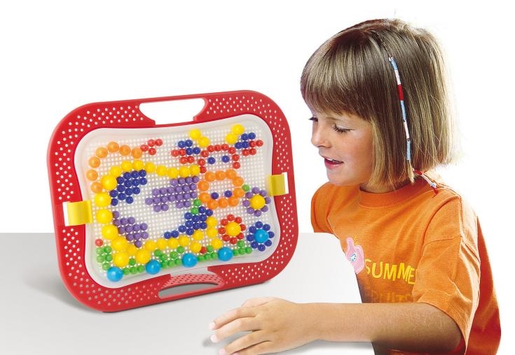 Вашему ребенку обязательно понравится собирать картинки из разноцветной мозаики! Яркие пластиковые детальки-гвоздики высотой крепятся на поле с дырочками. Сборка мозаичных картнок — прекрасное развлечение для ребенка. Дома, животные, цветы, автомобили, узоры — количество возможных картинок и фигур ограничивается только детским воображением! Занятия с мозаикой способствуют развитию мелкой моторики рук, фантазии, творческих способностей, внимания, учит правильно комбинировать цвета. Сборка картинок из разноцветных деталей — это творчество, для которого не требуется пачкающих руки красок и фломастеров. Детали прочно закрепляются на поле и готовая картинка не рассыпется если ее перевернуть, а когда собранная картинка уже надоела — легко снимаются.