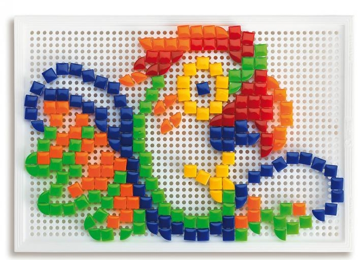 Вашему ребенку обязательно понравится собирать картинки из разноцветной мозаики! Яркие пластиковые детальки-гвоздики высотой крепятся на поле с дырочками. Сборка мозаичных картинок — прекрасное развлечение для ребенка. Дома, животные, цветы, автомобили, узоры — количество возможных картинок и фигур ограничивается только детским воображением! Занятия с мозаикой способствуют развитию мелкой моторики рук, фантазии, творческих способностей, внимания, учит правильно комбинировать цвета. Сборка картинок из разноцветных деталей — это творчество, для которого не требуется пачкающих руки красок и фломастеров. Детали прочно закрепляются на поле и готовая картинка не рассыпется если ее перевернуть, а когда собранная картинка уже надоела — легко снимаются.