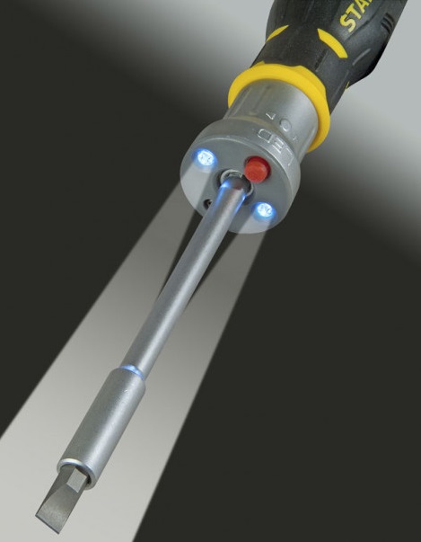 Отвертка + 12 насадок (5 мм, 6.5 мм, 8 мм / PH1, PH2, PH3 / PZ1, PZ2, PZ3 / T10, T15, T20). Светодиодная подсветка для работы в темных местах. Отсек в рукоятке для хранения вставок. Рукоятка из двух материалов для надежного контроля инструмента и передачи большого крутящего момента. Храповой механизм с 40 зубцами (с шагом 9°). Стержень с магнитным держателем вставки в рабочем положении. Начальный световой поток 3.5 лм. Время снижения светового потока до 50%: 110 мин. Время снижения светового потока до 10%: 210 мин. Простая процедура замены элементов питания (3 х AG3), для доступа к которым необходимо, удалив фиксирующий винт, поднять крышку, закрывающую светодиоды.