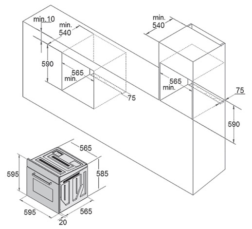 Размеры ниши для встраивания (ВхШхГ)59x56.5x54 см