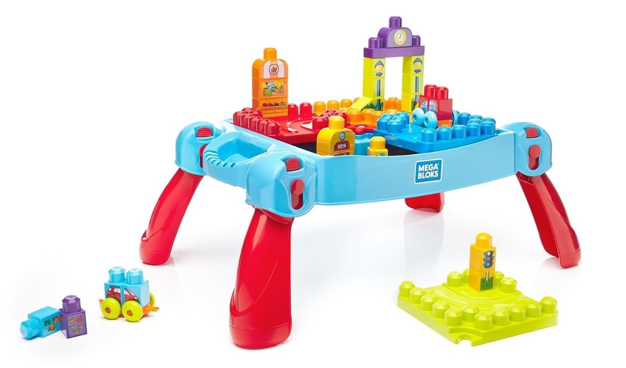 Как же интересно играть и учиться с этим замечательным столиком-конструктором от MegaBloks! Складной столик с отделом для хранения блоков и удобной ручкой для переноски легко взять с собой на прогулку или пикник. При помощи строительных блоков ваш ребенок построит АЗС, рынок и светофор, а после прокатится на автомобилях (входят в комплект) по трассе и городу. Малыш сможет освоить большинство классических дошкольных тем – от чисел и счета до разл