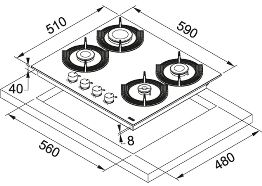Размеры для встраивания (ШхГ)56x48 см