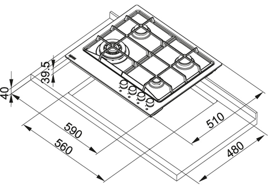 Размеры для встраивания (ШхГ)56x48 см