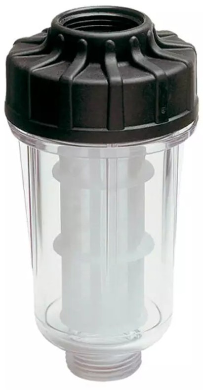 Фильтр, который устанавливается на кран, предназначен для улавливания загрязнений из воды, используемой для подачи в мойку высокого давления.