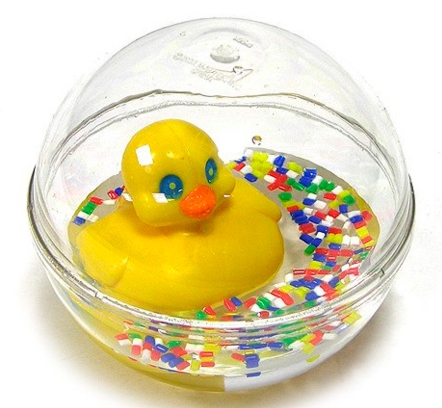 Игрушка представляет собой прозрачный шар, внутри которого вода, уточка и мелкие шарики. В ассортименте представлено несколько разных уточек.