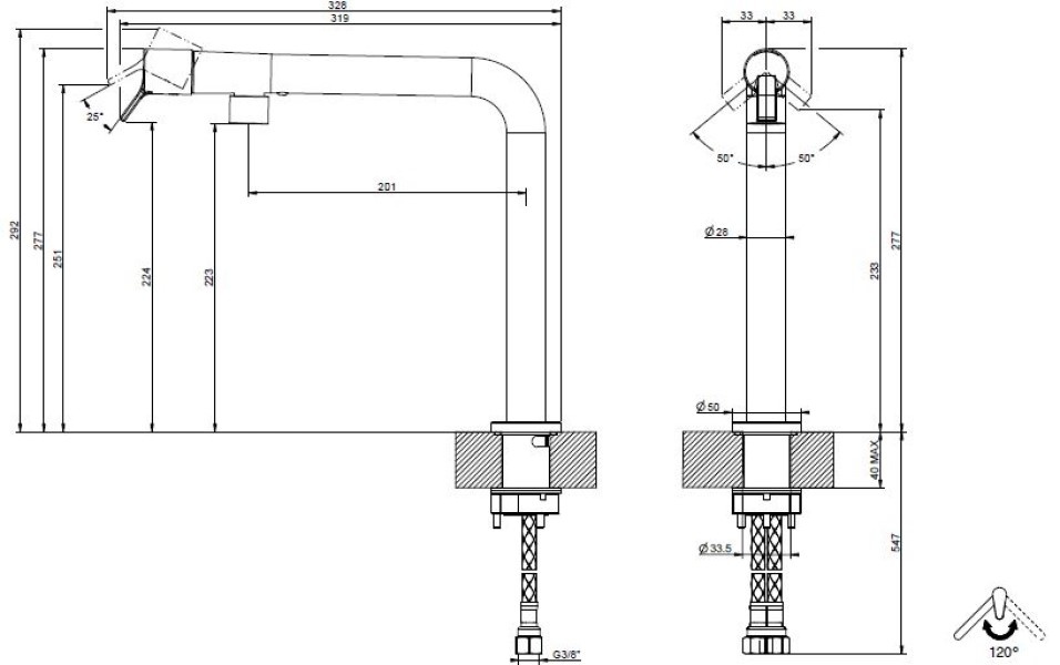 Угол поворота излива120 °