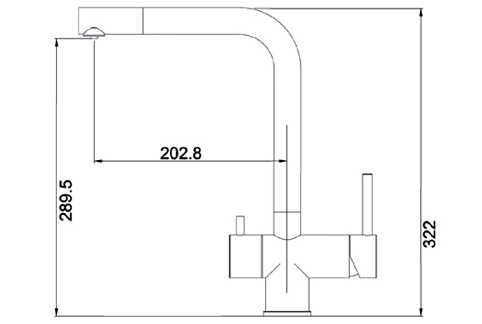 Комбинированный двухрычажный кухонный смеситель с раздельными аэраторами для проточной и фильтрованной воды. Смеситель с Г-образным высоким изливом. Угол поворота излива 360 градусов.