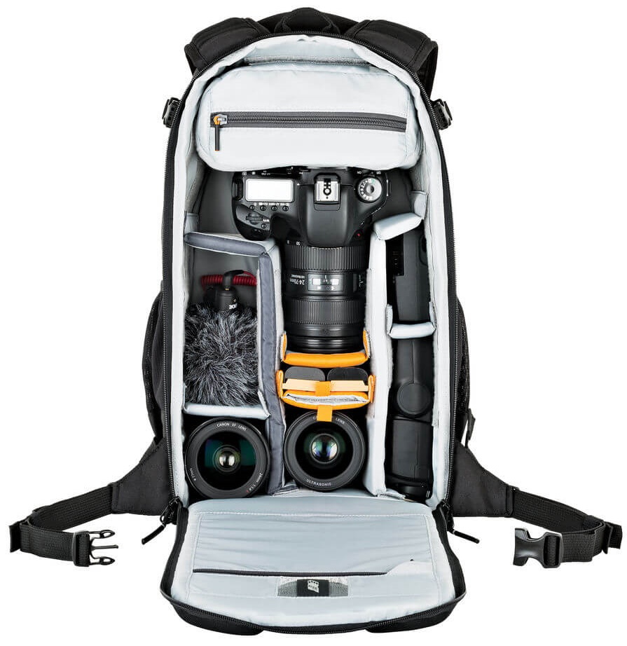 Рюкзак подходит для надёжного хранения, транспортировки и защиты фототехники. Вмещает зеркальный фотоаппарат, объектив 70-200, две линзы (зум + фикс). Или можно уместить комплект из: зеркального фотоаппарата с зум-объективом, двух квадрокоптеров компактных с батареями и пультом, а также зарядными устройствами. Внутренние перегородки-разделители позволят зафиксировать технику таким образом, чтобы при любой тряске не произошло случайных повреждений или ударов. Здесь же, для большего удобства, находится съемный чехол для аксессуаров, который надёжно фиксируется к внутренним стенкам рюкзака при помощи липучек.