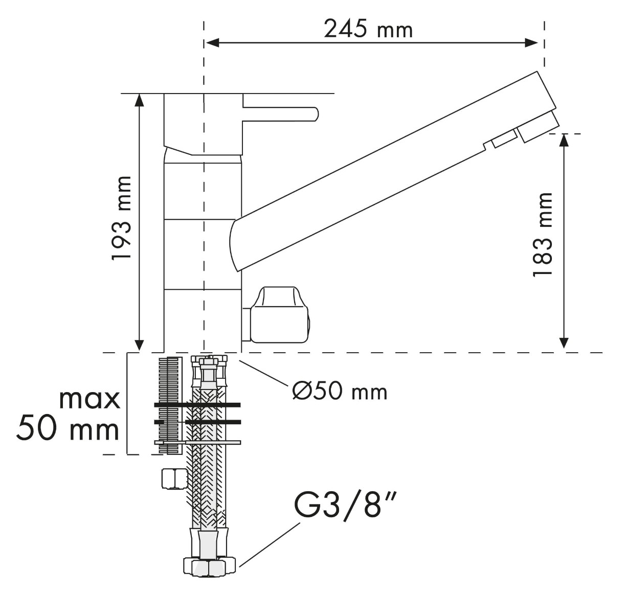 Длина излива245 мм