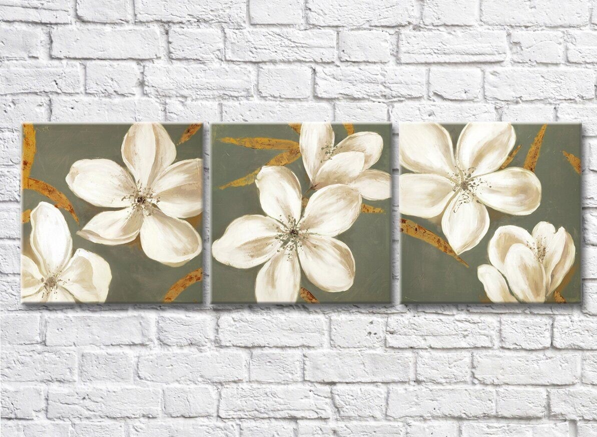 Картина Gallerix Triptych of beige large flowers on a gray green background (500683)