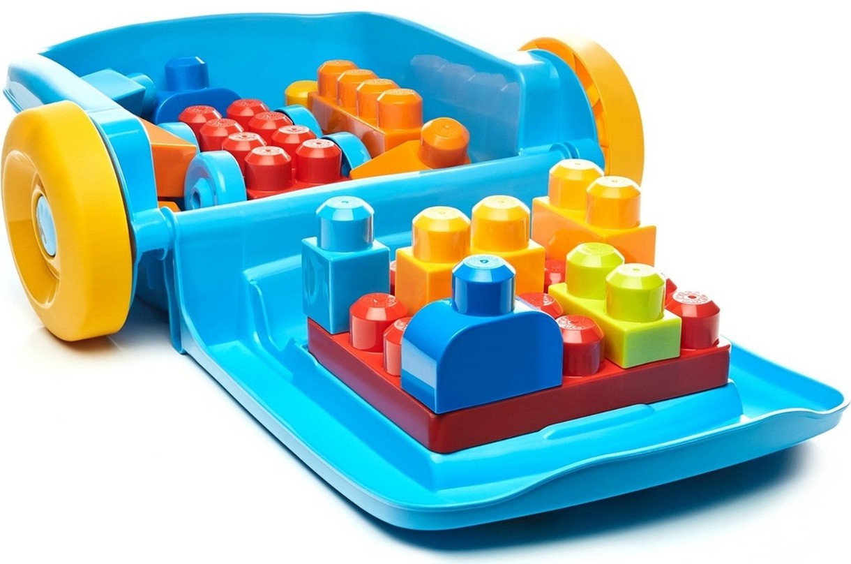 Куда бы ни отправился ваш юный строитель, он всегда сможет взять любимые игрушки с собой, сложив их в яркий чемоданчик на колесиках! Удобная ручка позволит без усилий перевозить чемоданчик с места на место. Внутри же вы найдете набор строительных блоков и базу с колесами для создания машинок! Снимите переднюю панель и положите ее внутрь чемоданчика, а затем постройте на ней все что захотите. Когда настанет время уходить, сложите содержимое обратно в чемодан и отправляйтесь в новое приключение! Идеально подходит для детей от 1 года до 5 лет.