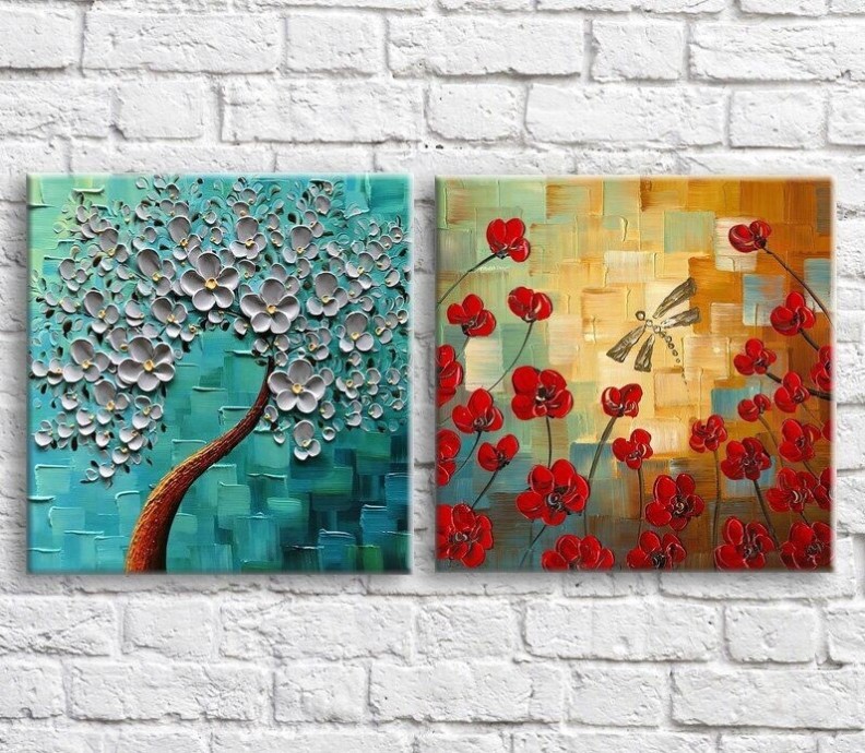 Картина ArtPoster Red poppies and dragonfly on texture background, diptych (3467735)