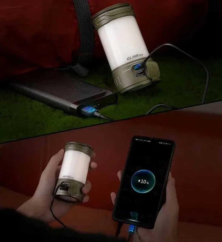 Фонарь Fenix CL26R Pro Olive Drab — многофункциональный кемпинговый фонарь с мощным и равномерным освещением, предназначенный для туризма, кемпинга, рыбалки и использования в быту. Он оснащён несколькими источниками света и режимами яркости, что позволяет выбирать как рассеянное освещение для палатки или стола, так и более направленный свет для рабочей зоны. Фонарь работает от встроенного перезаряжаемого аккумулятора с удобной зарядкой через USB-C, отличается длительным временем автономной работы и стабильной световой отдачей. Прочный корпус устойчив к влаге и механическим воздействиям, а продуманная конструкция позволяет использовать фонарь как настольный, подвесной или переносной источник света.