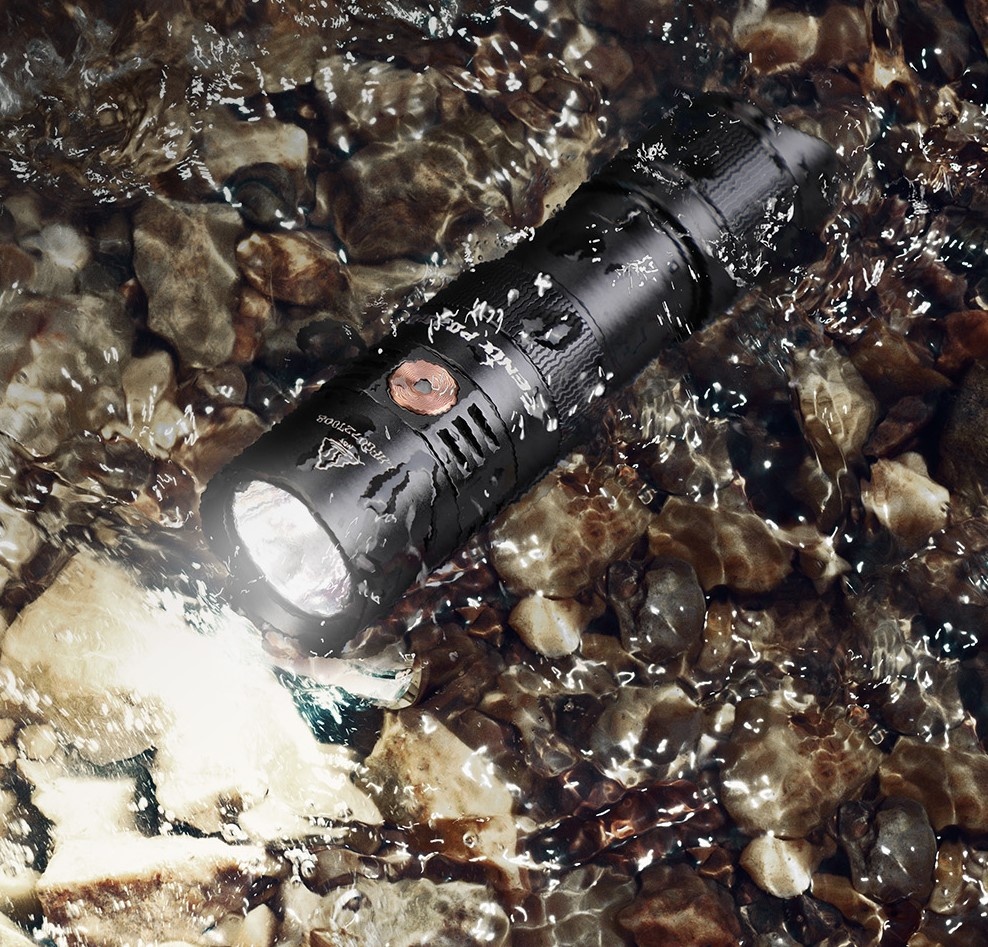 Спрятанный порт для зарядки USB Type-C обнажается поворотом защитного кольца. Такая конструкция обеспечивает лучшую водонепроницаемость фонаря. PD25R работает до 70 часов от аккумулятора в комплекте ARB-L16-700P Li-ion. Также он может работать от литиевой батарейки CR123A.