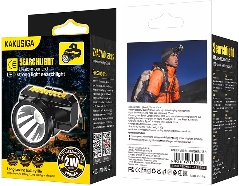 Фонарь KSC‑1710 Zhaoyao- это LED-модель высокой интенсивности, крепящаяся на голову, компактная и лёгкая (80 г), идеально подходящая для использования на открытом воздухе или в ситуациях, требующих надёжного освещения. Прочный корпус из ABS и стеклянная линза с LED-спотом Sanan 3030 обеспечивают яркий и чёткий свет.