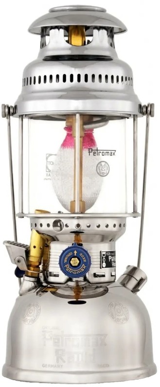 Уникальная технология высокого давления и высококачественное немецкое производство Превосходный световой поток лампы Petromax является результатом простого, но увлекательного принципа: керосин под давлением подается в карбюратор, где испарившееся топливо вступает в реакцию с оболочкой, пропитанной светящейся солью, в результате чего возникает яркий теплый свет. Чтобы этот принцип работал безупречно, более 200 штук лампы по-прежнему собираются вручную.