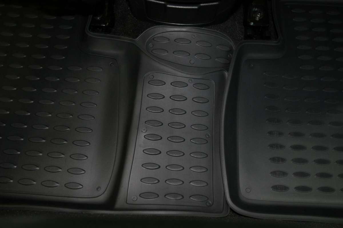 Комплект - 4 коврика - два передних, два задних + перемычка на тоннель между задними коврами.Высота бортиков 3-4 см, очень надежно защищают от грязи и снега в зимний период.Коврики имеют все необходимые отверстия для крепления (люверсы и лепесток для места отдыха левой ноги (если это предусмотрено производителем авто.