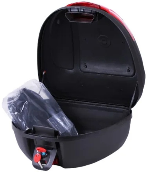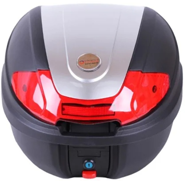 Кофр YM‑0830 (V‑30L) с размерами 41×40×32 см предназначен для установки на скутер, лёгкий и средний мотоцикл. Корпус выполнен из прочного ABS‑пластика, устойчивого к ударам, сколам и трещинам, а поверхность легко очищается от загрязнений. Полезный объём составляет 30 л, а вес всего 4 кг, что обеспечивает лёгкость транспортировки и простоту установки. Модель выполнена в стильном дизайне и оснащена встроенным светоотражателем в задней части, замком с защитой от взлома на нижней части багажника. Светоотражатели, расположенные по бокам кофра, обеспечивают высокую заметность в тёмное время суток, а герметичная конструкция защищает содержимое от влаги и пыли.