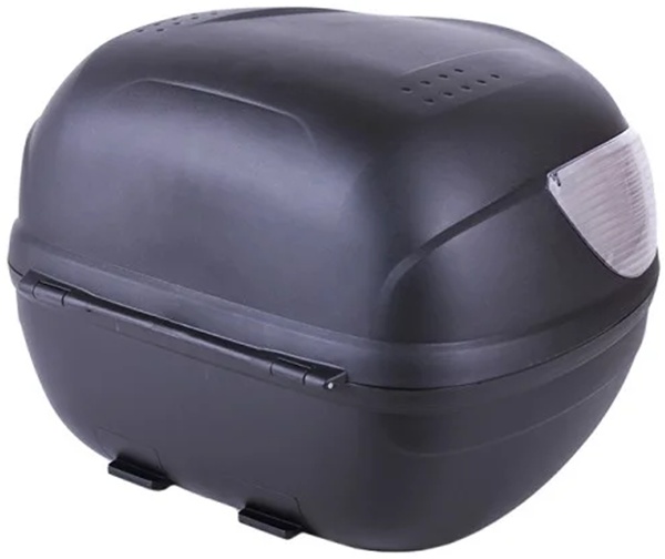 Кофр YM‑0866 (V‑32L) с размерами 43×41×31,5 см предназначен для установки на скутер, лёгкий и средний мотоцикл. Корпус выполнен из прочного ABS‑пластика, устойчивого к ударам, сколам и трещинам, а поверхность легко очищается от загрязнений. Модель имеет стильный чёрный дизайн. Полезный объём составляет 32 л, вес всего 4 кг, что обеспечивает лёгкость транспортировки и простоту установки. Кофр оснащён встроенным светоотражателем в задней части, замком с защитой от взлома на нижней части багажника, а цельная серебристая светоотражающая полоса покрывает большую площадь, повышая видимость мототранспорта в тёмное время суток. Конструкция герметична, защищая содержимое от влаги и пыли.