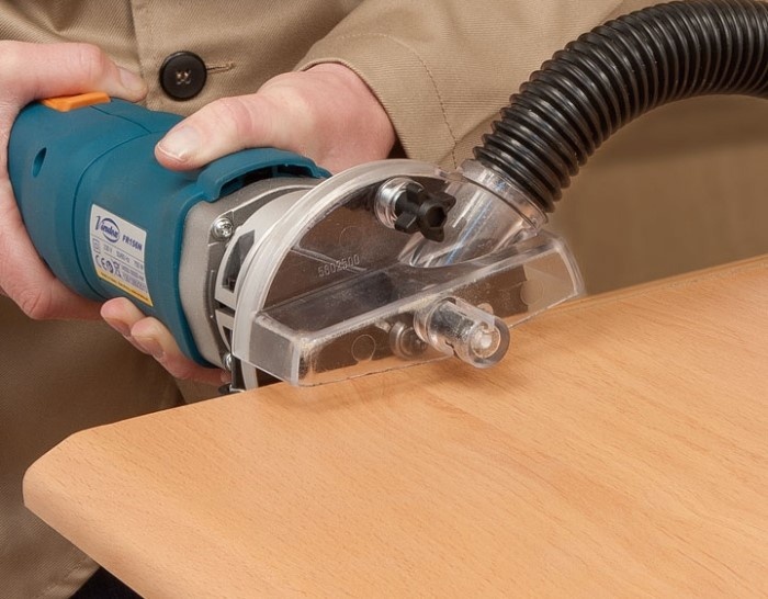 Качество обработки и долгий срок службы обеспечивается надежностью конструкции, включающей в себя мощный двигатель (750 Вт) с двойной изоляцией и системой электронной регулировки частоты вращения, что необходимо для обработки различных типов кромочных материалов, систему контроля и поддержания частоты вращения под нагрузкой, а также сдвоенный передний подшипник.