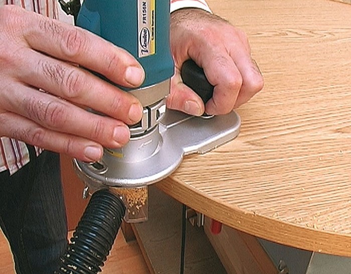 Фрезер оснащен системой пылеудаления, включающей помимо кожуха пылеудаления три сменные пластины с отверстиями D20, 26 и 30 мм для фрез различного диаметра и систему торможения внешней обоймы опорного подшипника.