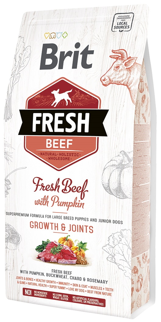 Brit Fresh Beef With Pumpkin Puppy Large Growth & Joints. Полнорационный сухой корм со свежей говядиной и тыквой для щенков крупных пород — рост и суставы.