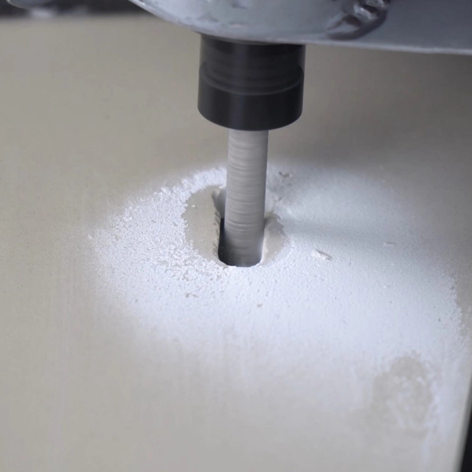 На помощь приходят контурные пальчиковые фрезы Baumesser Contour Pro для керамими и керамогранита. С помощью фрезы можно расширять отверстия в нужный диаметр. Нет необходимости держать целый набор сверл.