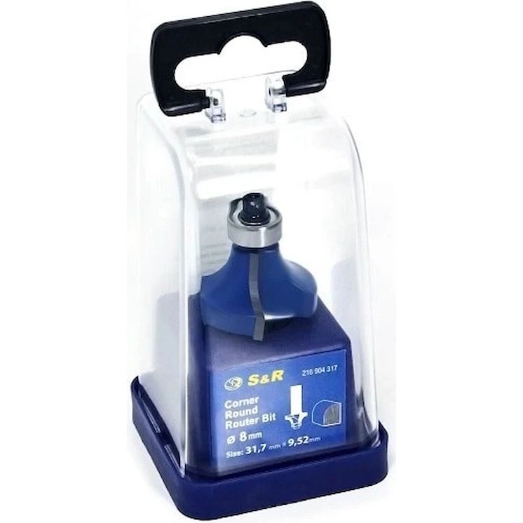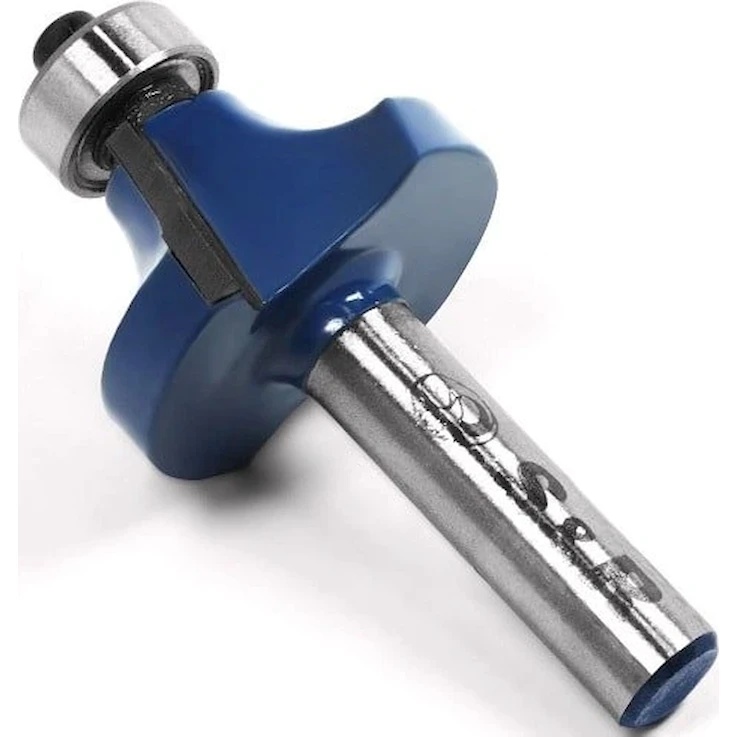 Хвостовик диаметром 8 мм позволяет работать с широким диапазоном электрических фрезеров, которые оборудованы цангой соответствующего диаметра. На конце оборудована фреза подшипником для легкого прохождения по детали, который предотвращает проникновение фрезы в деталь.