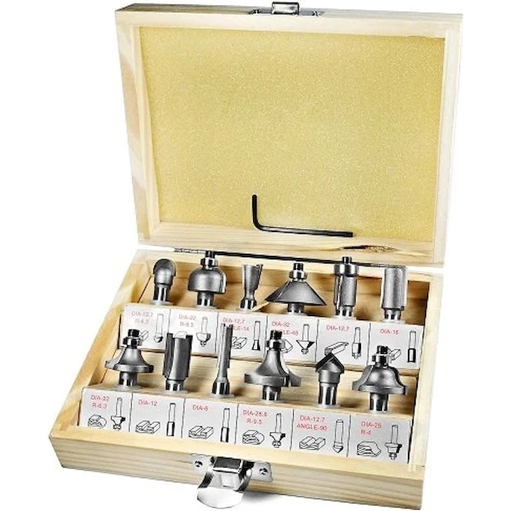 Stark 250016015 — это профессиональный набор фрез по дереву из 12 предметов, предназначенный для использования с ручными электрическими фрезерами.