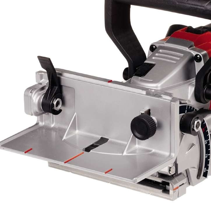 Фрезер ламельный аккумуляторный Einhell TE-BJ 18 Li - Solo для плоских шкантов (ламелей) предназначен для фрезерования пазов в массивной древесине, клееной фанере и стружечных плитах, может использоваться независимо от источника питания. Сложные конструкции возможны благодаря бесступенчатой установке угла 0 – 90° и высоте фрезерования 0 – 40 мм. Глубина фрезерования может быть легко установлена на 6-ступенчатую регулировку глубины реза до 20 мм, используя функцию быстрой настройки. Блокировка шпинделя позволяет легко изменять фрезы. В комплект поставки входит торцевой ключ и мешок для пыли. Инструмент поставляется без аккумулятора и зарядного устройства, но может быть приведен в действие с помощью Power X-Change аккумулятора.