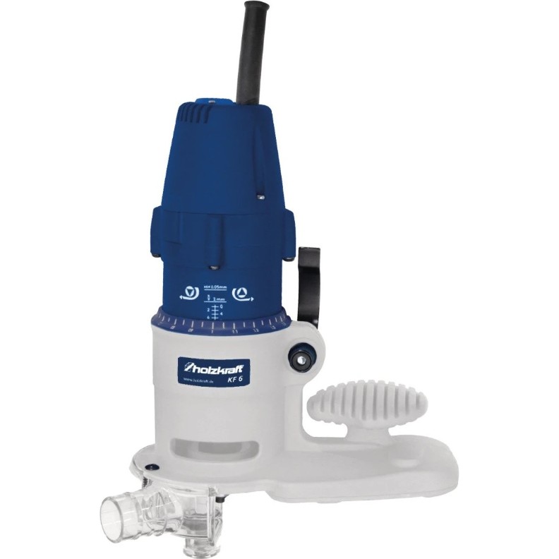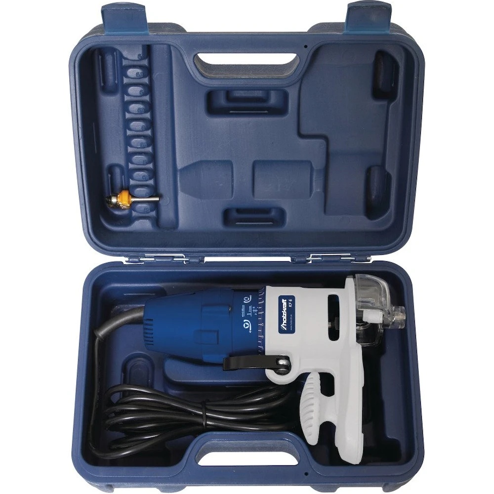 Holzkraft KF 6 — это компактный ручной кромочный фрезер (кромкорез), предназначенный для точной обработки кромок из цельной древесины, ПВХ или меламина. Он широко используется для снятия фасок, скругления краев и фрезерования свесов кромочного материала на прямолинейных и криволинейных деталях.