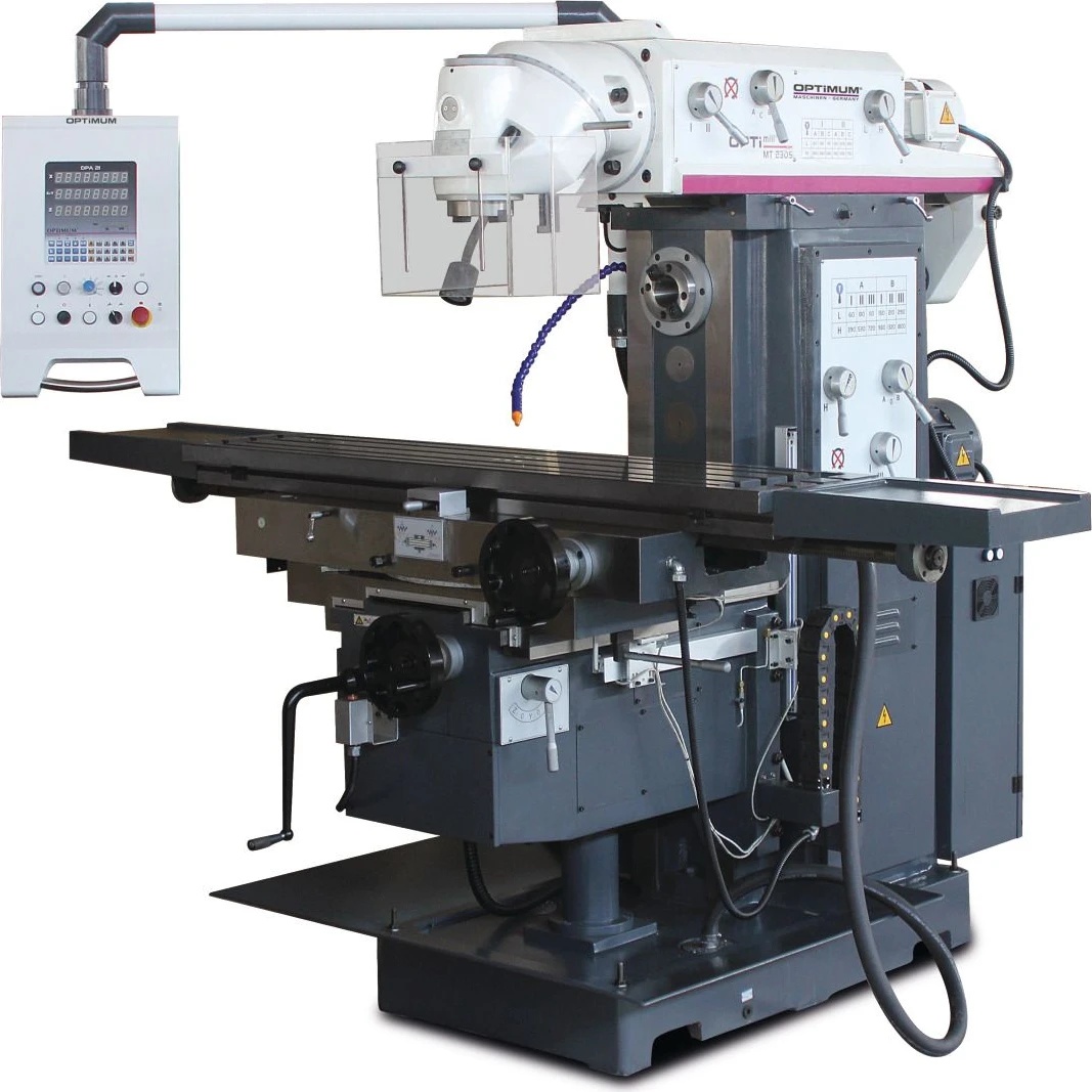 Optimum OPTImill MT 230S — это промышленный широкоуниверсальный фрезерный станок, предназначенный для выполнения операций фрезерования, сверления и рассверливания. Станок оснащен как вертикальным, так и горизонтальным шпинделем, что позволяет обрабатывать детали под различными углами без их переустановки.