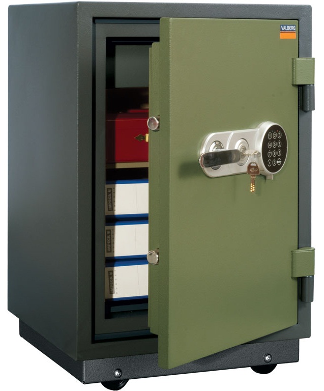 Предназначен для сохранности документов и ценностей при пожаре. При заливке двери и корпуса сейфа используется запатентованный состав огнестойкого бетона. В конструкции используется тепловой замок, препятствующий прохождению огня периметр дверного проема оборудован огнестойким уплотнителем. Ригельная система запирания. Оборудован колесами.