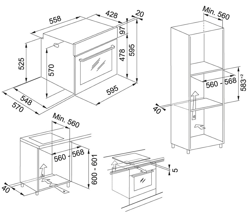 Размеры ниши для встраивания (ВхШхГ)60x56x56 см