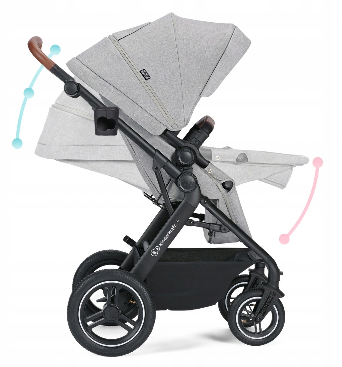 Благодаря этому коляска идеальна для любого сезона. За комфорт во время езды также отвечает спинка, устанавливаемая в 3-х позициях: от положения сидя до положения лежа. Вашему ребенку понравится эта коляска благодаря используемым материалам, амортизации и дополнительным удобствам, которые сделают каждую прогулку приятной.